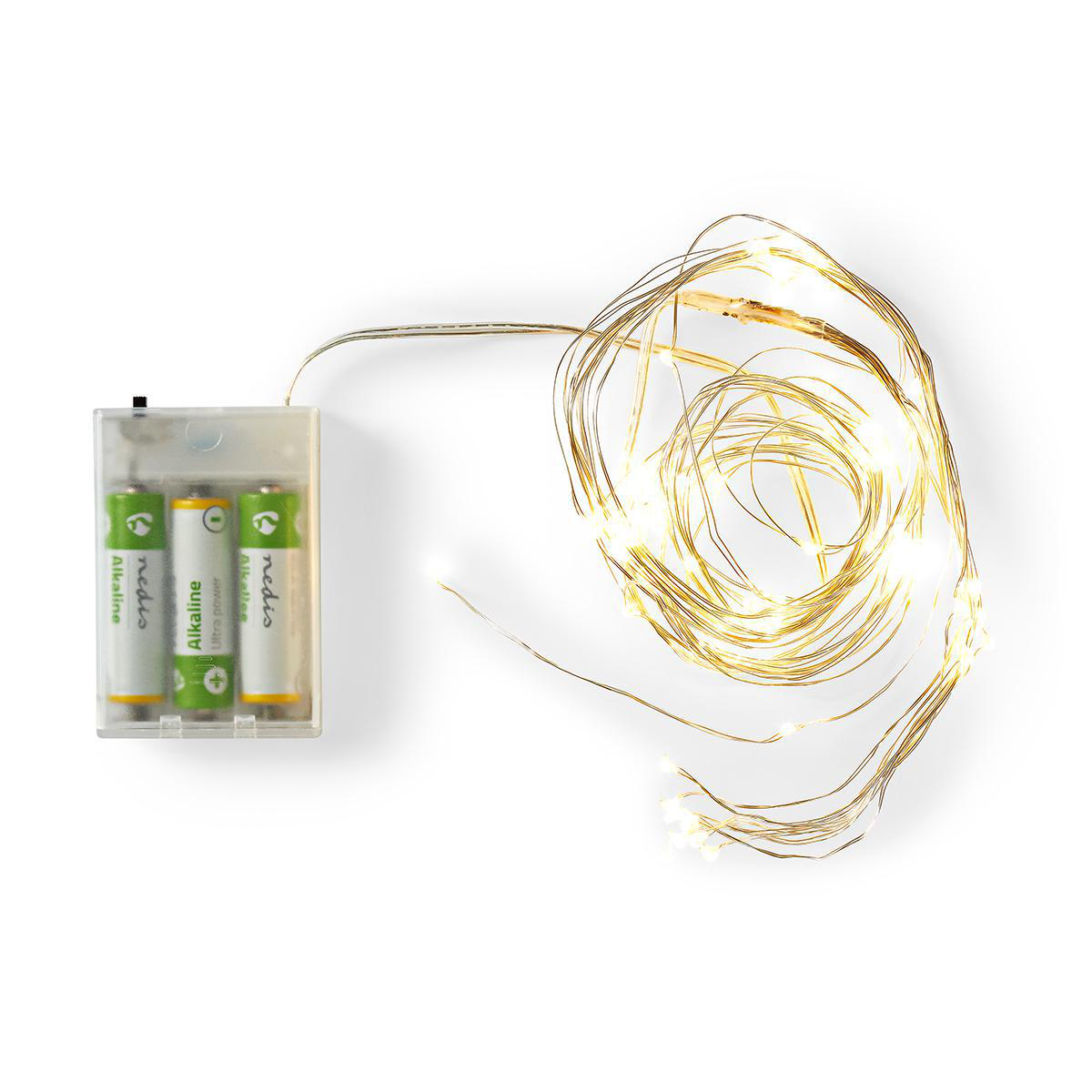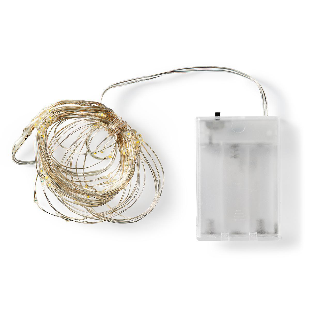 LED Lichterkette, silbernes Kabel, batteriebetrieben, innen, 80 MICROLED's warmweiss, (10 Ketten x 8 LED's), 10 cm Lampenabstand, 30 cm Anschlusskabel, Querschnitt 0.12 m², Batteriebox; 3x AA Batterien, nicht ethalten, verpackt in Klarsichtbox 7x3,5x13 cm, mit Euro-Lochung und Farblabel